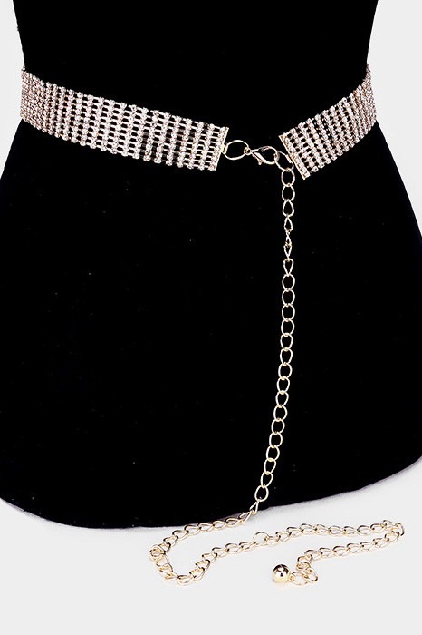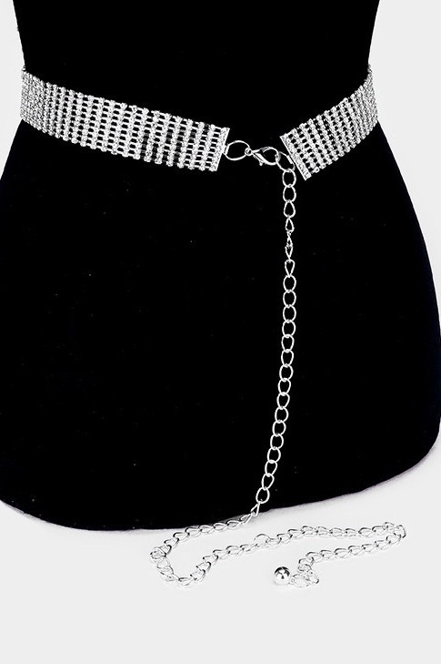 9 Row Rhinestone Pave Chain Belt