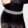 Size : 1" H Total Size : 25" + 22" L 9 Row Crystal Rhinestone Pave Chain Belt
