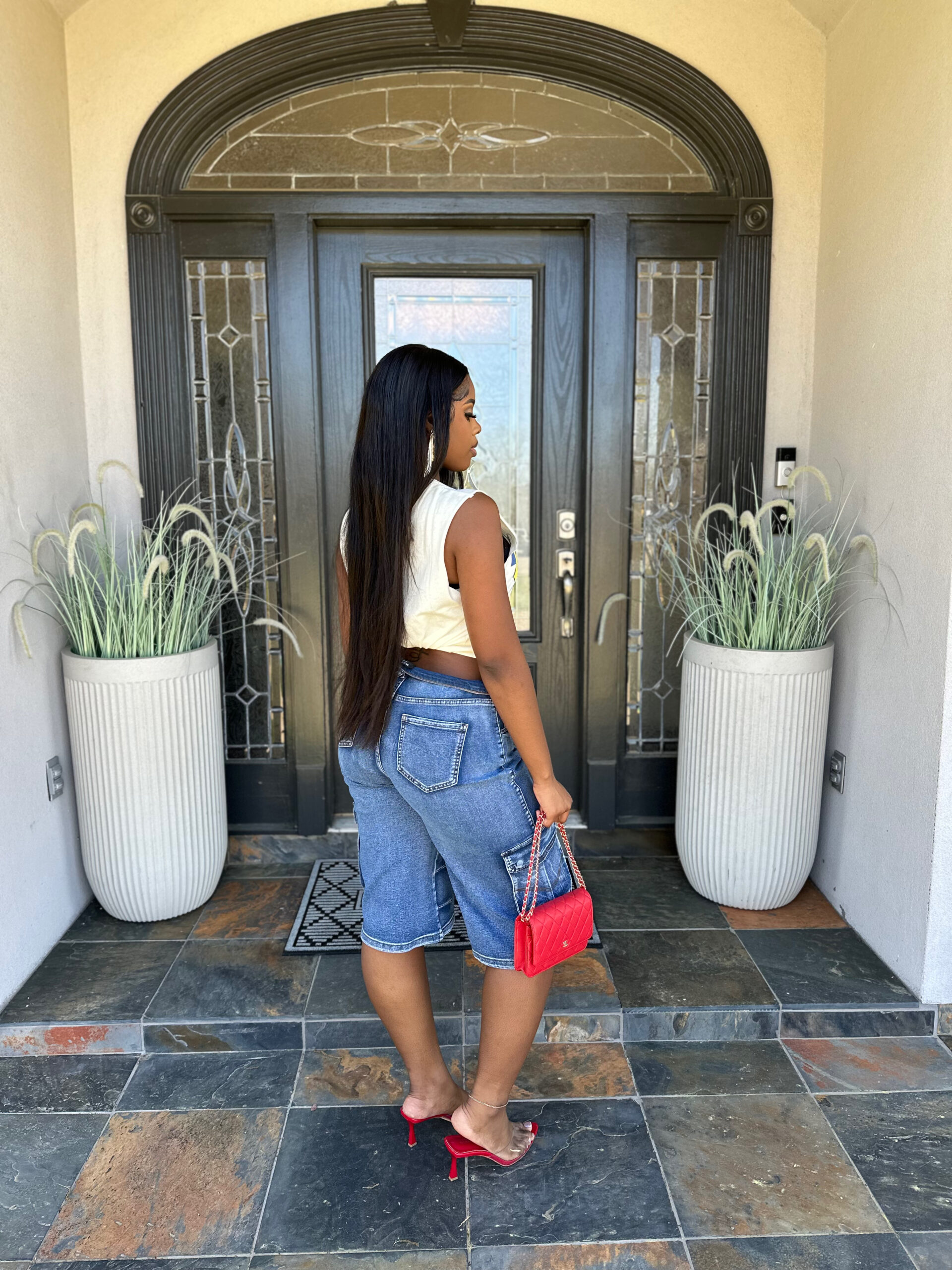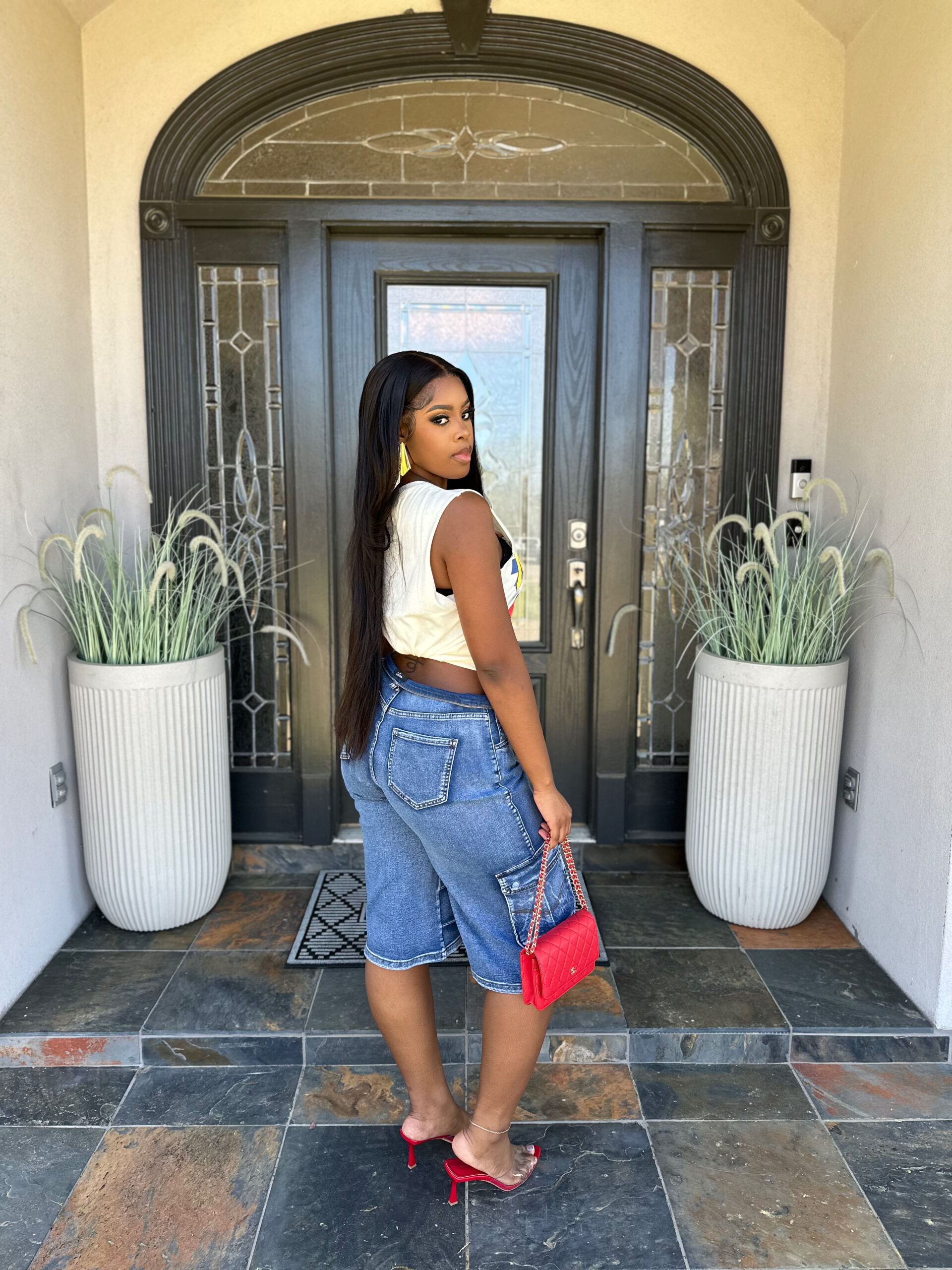 These cargo jorts are definitely giving 90’s vibes. Perfect with a t-shirt or dress them up with a button down. It’s your world.