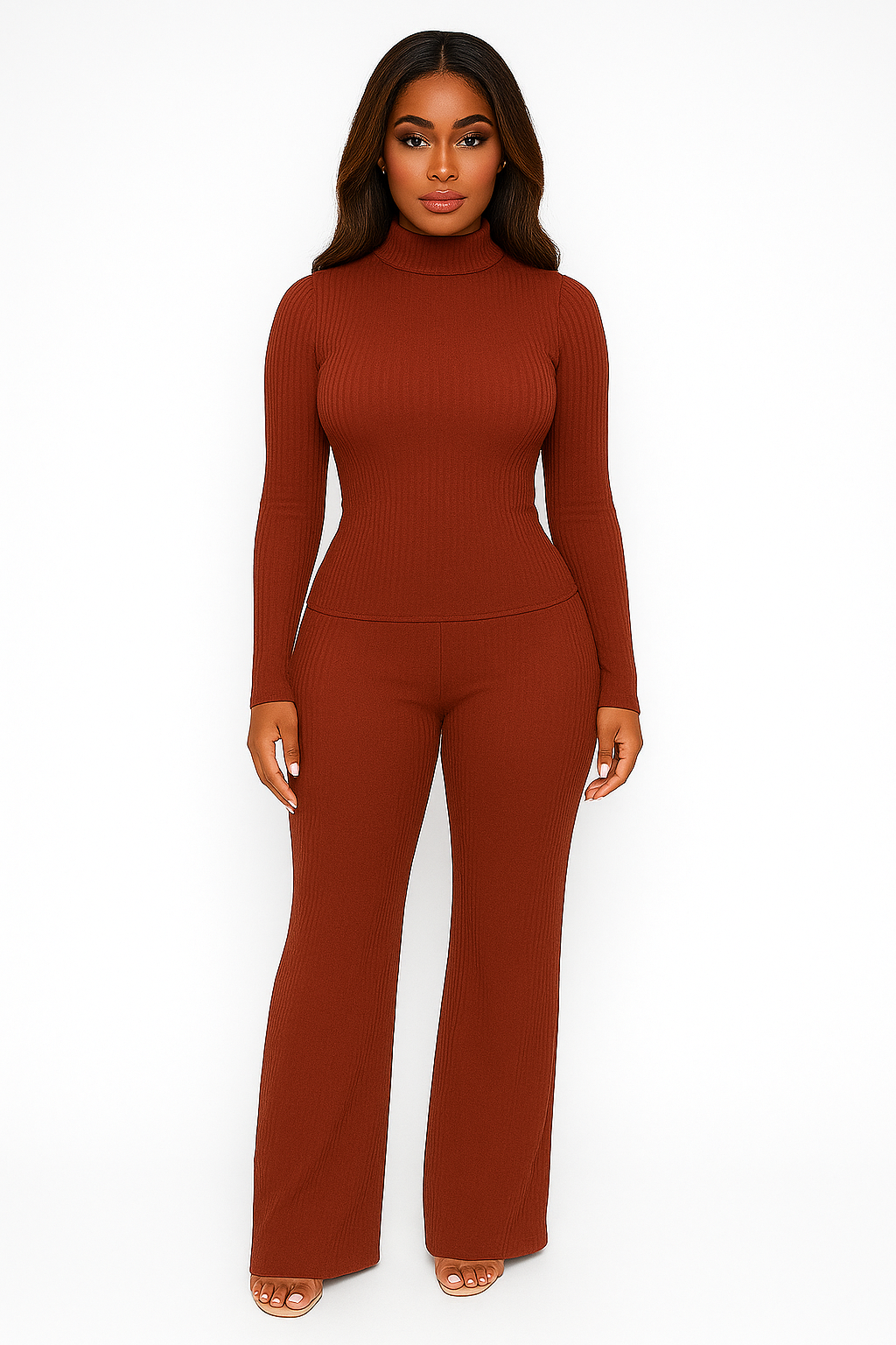 Step into effortless sophistication with our Confident Elegance Set. Designed to flatter every curve, this two-piece ribbed knit ensemble features a sleek mock-neck top with a tailored fit and wide-leg pants that flow beautifully with every step. Perfect for day-to-night transitions, this set combines comfort, stretch, and style—making it your go-to for any occasion.