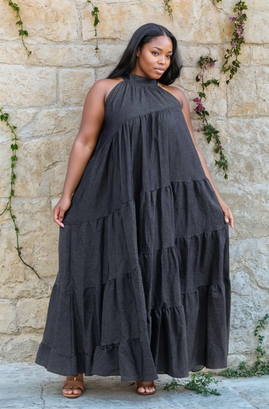 Turn heads in the effortlessly chic Denim Daydream Maxi. This halter-style dress blends casual cool with graceful flair, featuring soft tiered layers in lightweight denim that move beautifully with every step. The high neckline adds polish, while the relaxed silhouette and convenient pockets keep things comfy and functional. Dress it up with heels or down with sandals—either way, you’ll radiate laid-back elegance all day long.