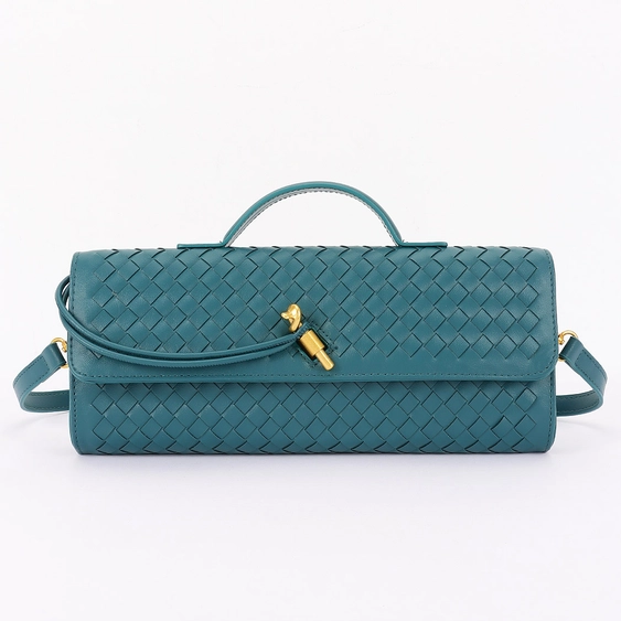Elevate your style with the Emerald Weave Clutch, a versatile piece that effortlessly blends sophistication with function. Crafted with a luxe woven texture and finished in a striking teal hue, this bag makes a bold yet timeless statement. Designed with a sleek top handle and a detachable crossbody strap, it transitions seamlessly from day to night—carry it as a clutch for evening elegance or wear it crossbody for hands-free convenience. Gold-tone hardware adds just the right touch of shine, making this bag the perfect finishing accessory for both casual chic and polished looks.