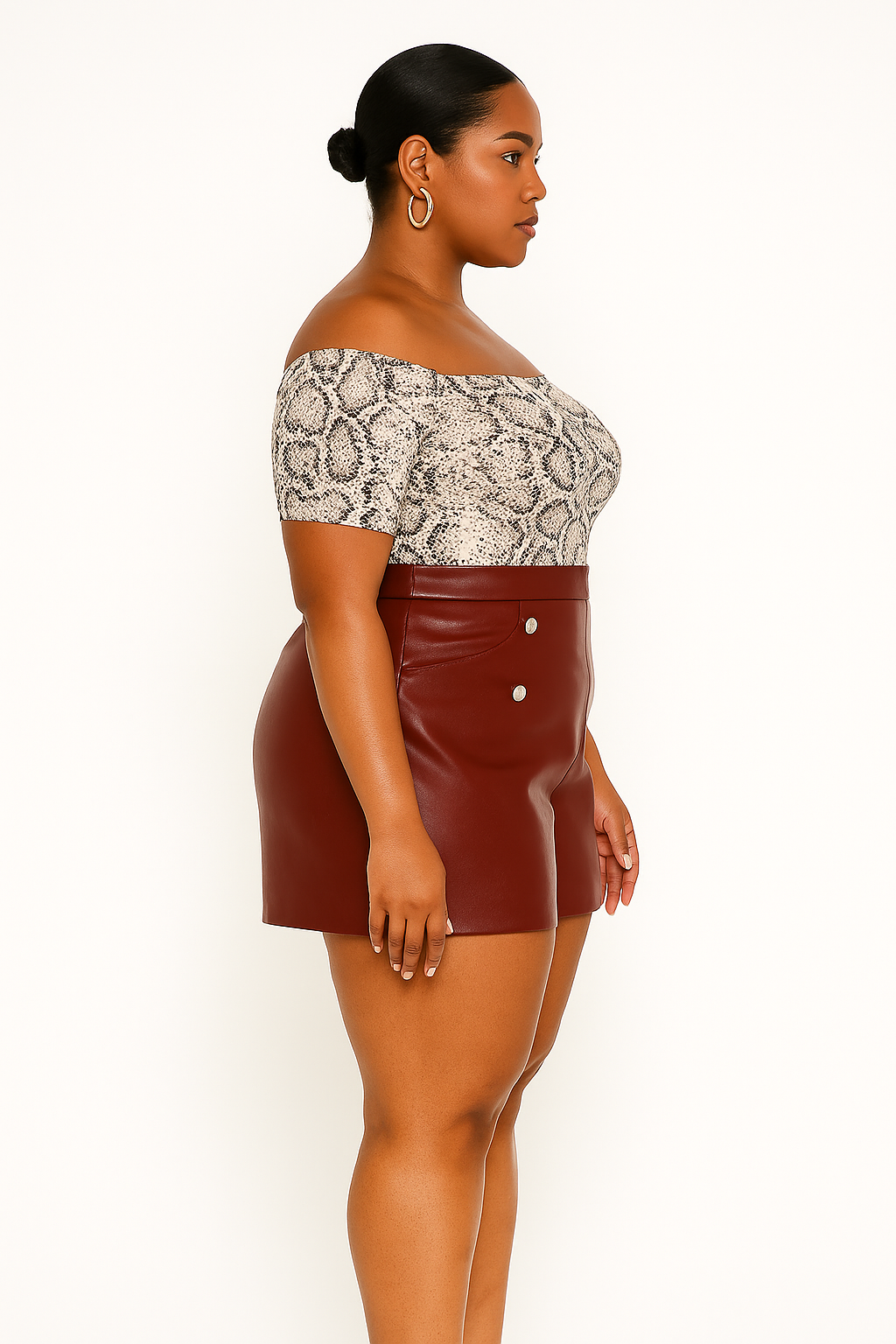 Our Rich Tones Shorts embody luxe versatility with two statement-making shades—deep burgundy and warm toffee. Designed in sleek faux leather with a flattering high-waist fit and polished gold button accents, these shorts balance edge with elegance. Dress them up with heels for a bold night out or style them effortlessly with a chic blouse for daytime glam. With colors this rich, your style speaks volumes.