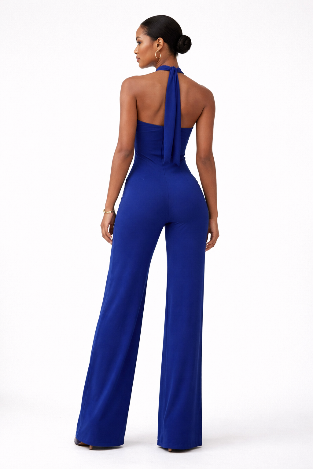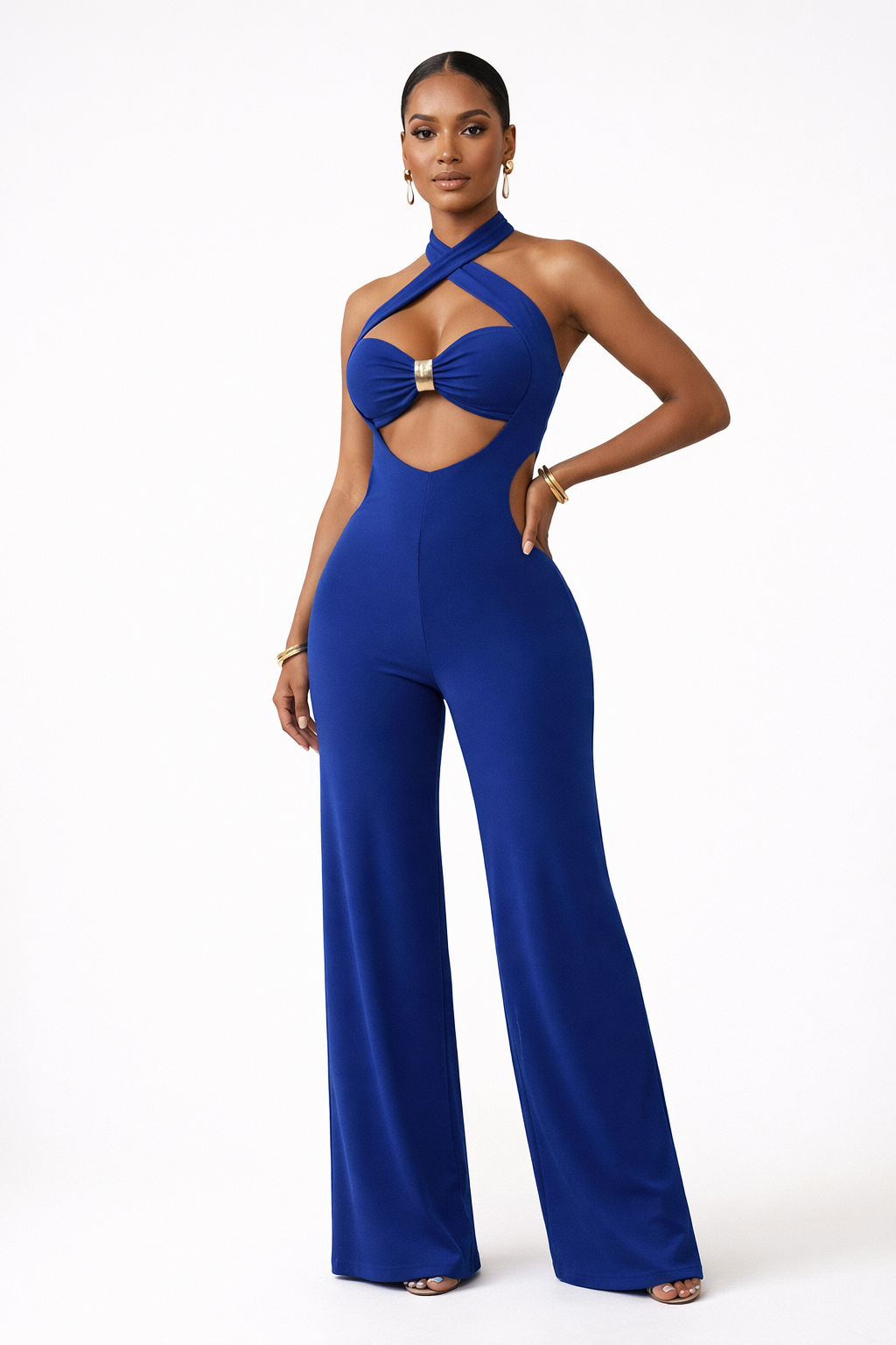Turn heads and own every room in the Jazelle Jumpsuit—a bold, sculpting statement piece designed for the woman who embodies confidence and class. Featuring a striking halter neckline with a structured cutout bodice, this jumpsuit accentuates your curves while creating a sleek, elongated silhouette.