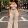 Turn heads in our Luxe Pleat Power Set, the perfect blend of sophistication and effortless style. This two-piece features a strapless ruched top with statement buttons down the front, designed to accentuate your curves while keeping it chic. The matching wide-leg pleated pants flow with every step, giving you an elegant yet relaxed vibe. Whether you’re dressing it up with heels for a night out or keeping it sleek for brunch with the girls, this set is a wardrobe essential.