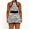 Turn heads from city to city in our Jet Setter Vibes Set. This black and white stretch skirt set features a bold allover print of major fashion capitals like Paris, London, New York, and Milan. The racerback crop top hugs your curves with a sporty edge, while the fitted mini skirt accentuates your silhouette with effortless style. Made with a soft, body-contouring knit fabric that moves with you, this set is perfect for rooftop parties, weekend getaways, or anytime you want to serve international flair. Pair it with sneakers for a casual vibe or heels for full-on runway energy.