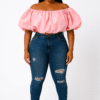 Puff & Play Off-Shoulder Crop Top Pink