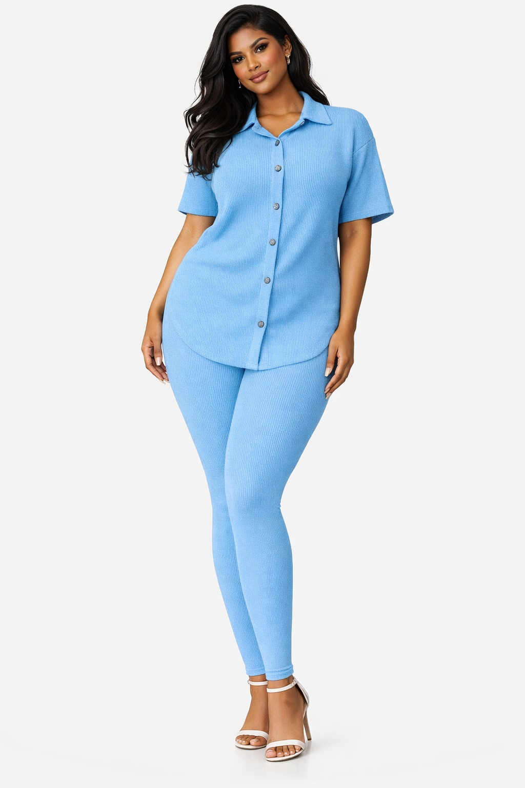 Crafted from a luxe stretchy wave rib fabric, this set moves with you while sculpting your silhouette in all the right places. The breathable texture and soft-touch feel make it ideal for all-day wear—whether you’re running errands, stepping out for brunch, or keeping it cute and casual.